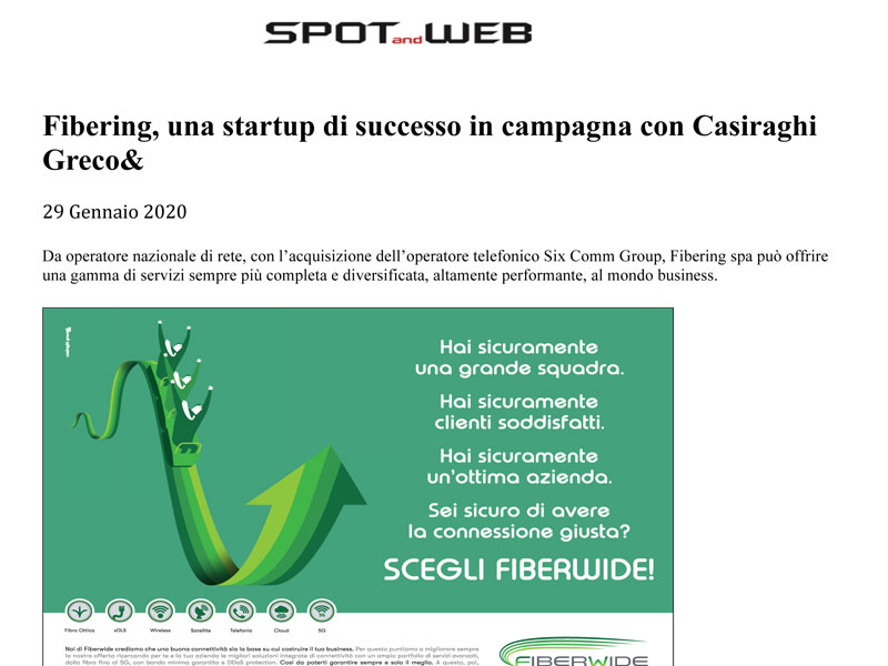 Fiberwide va su quotidiani con Casiraghi Greco&